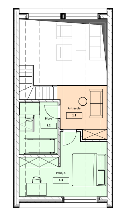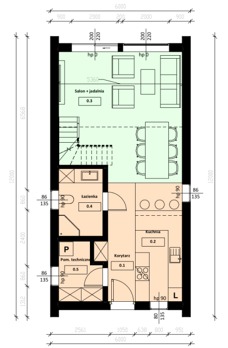 • Wymi­ary budynku: 14,64 m x 8,96 m